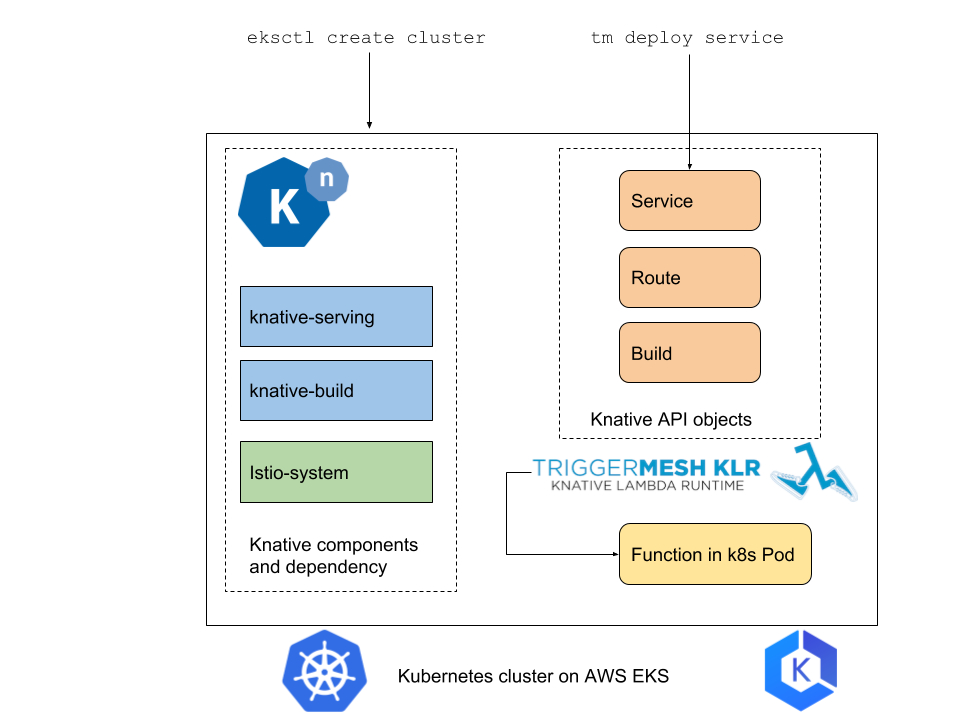 AWS deploys AWS Lambda compatible functions in AWS EKS using TriggerMesh KLR: